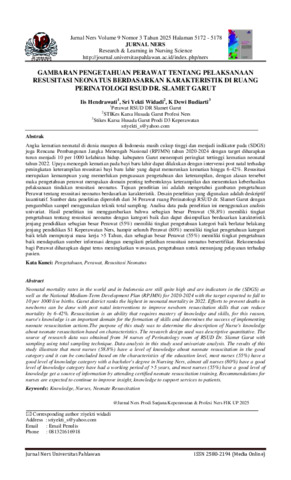 GAMBARAN PENGETAHUAN PERAWAT TENTANG PELAKSANAAN RESUSITASI NEONATUS BERDASARKAN KARAKTERISTIK DI RUANG PERINATOLOGI RSUD DR. SLAMET GARUT