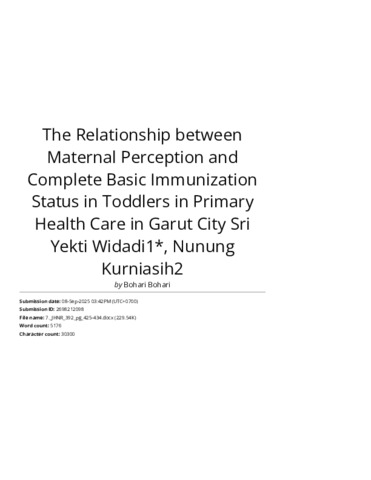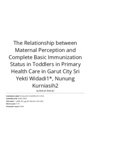 Sri, Yekti Widadi The Relationship between Maternal Perception and Complete Basic Immunization Status in Toddlers in Primary Health Care in Garut City Sri.