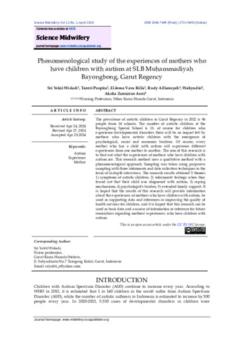 Sri, Yekti Widadi Phenomenological study of the experiences of mothers who have children with autism at SLB Muhammadiyah Bayongbong, Garut Regency.